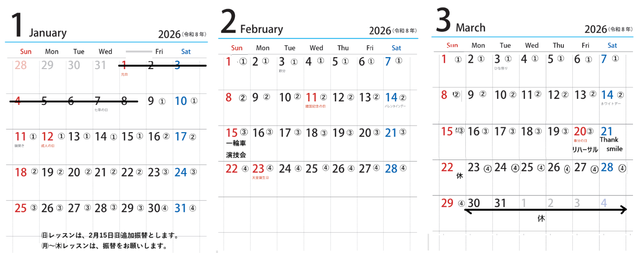 - 3月30㈰㈪31日㈫レッスンはお休みです